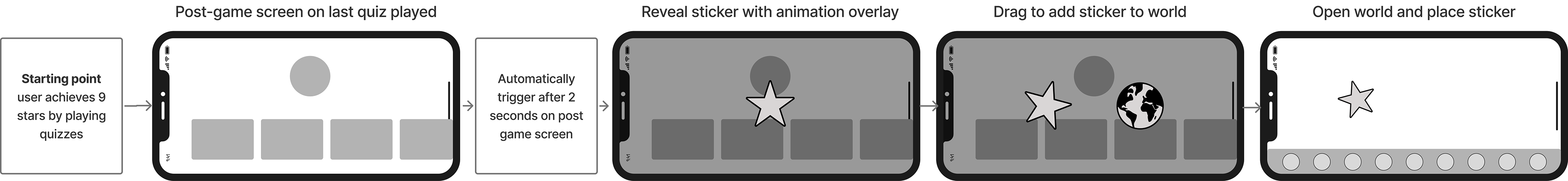 In order to keep kids engaged and encourage them to continue playing and learning, we determined that 3 quizzes - at just under 10 minutes on average - as the adequate completion rate to unlock one reward (sticker).